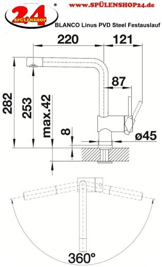 BLANCO LINUS.PVD STEEL FESTAUSLAUF - Ansicht im eingebautem Zustand 03850504