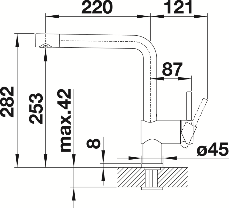 - Hahnlochbohrung mit Ø 35 mm erforderlich