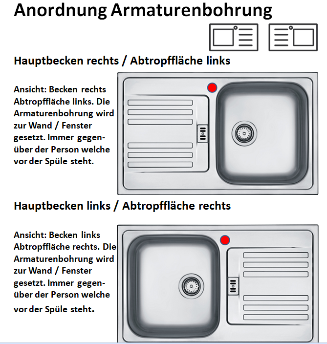 Edelstahlspüle mit Handbetätigung Oberfläche: Naturfinish Außenmaße: 605x500mm