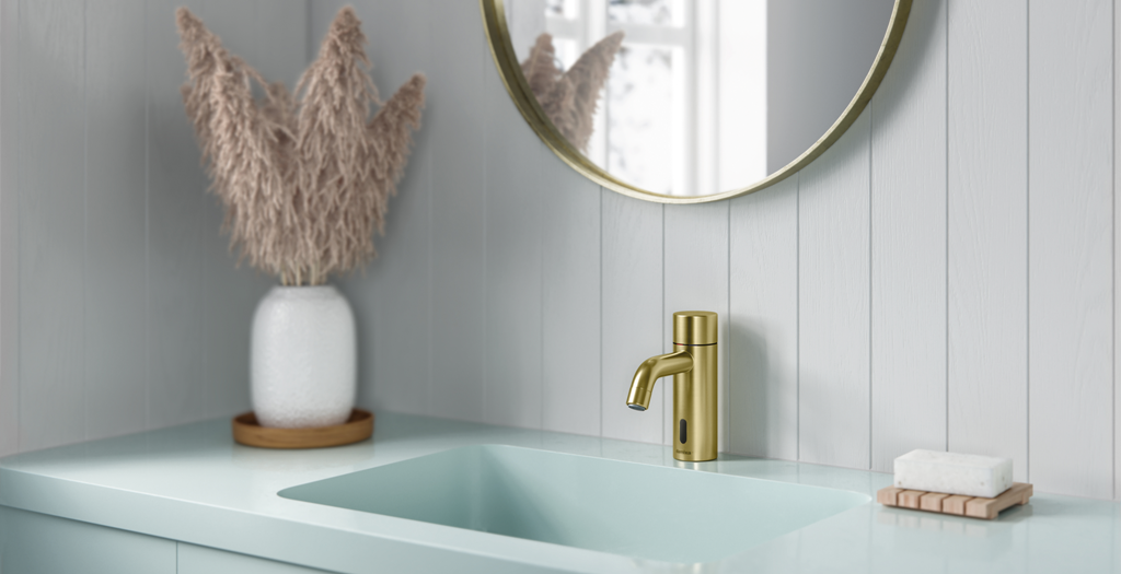Einhebelmischer / Waschtischarmatur Hochdruck Badarmatur Auslauf fest, Berührungsloser Sensor Oberfläche: Messing gebürstet