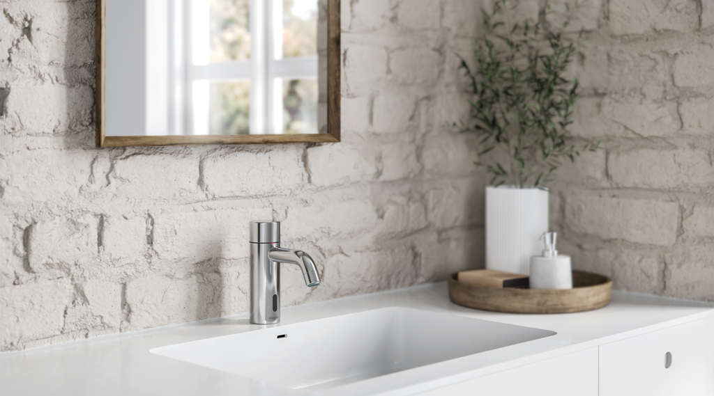 Silhouet Touchless ist eine Revolution bei berührungslosen Armaturen und wurde speziell für den Heimgebrauch entwickelt. Stilvoll, praktisch und hygienisch, da Sie die Armatur nie mit schmutzigen Händen berühren müssen. Sie können die Temperatur und den Durchfluss leicht ändern, je nachdem, ob Sie Ihre Hände waschen, Ihre Zähne putzen, sich rasieren oder ein Glas mit kaltem Wasser füllen möchten. Es ist auch einfach, die Armatur völlig auszuschalten, wenn Sie das Waschbecken reinigen müssen.