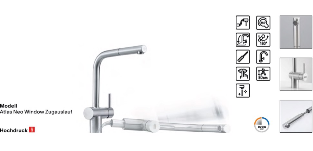 Einhebelmischer mit Zugauslauf Vorfenstermontage Oberfläche: Chrom mit schwenkbarem Auslauf