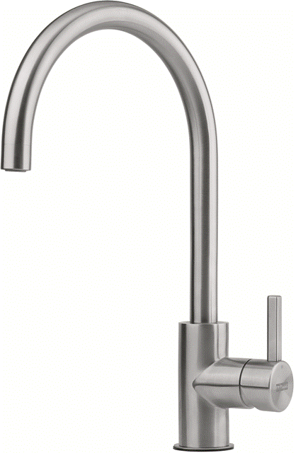 Einhebelmischer Eos Neo Festauslauf Hochdruck mit Laminar Perlator ausgestattet Material: Edelstahl massiv