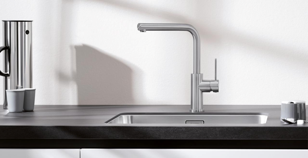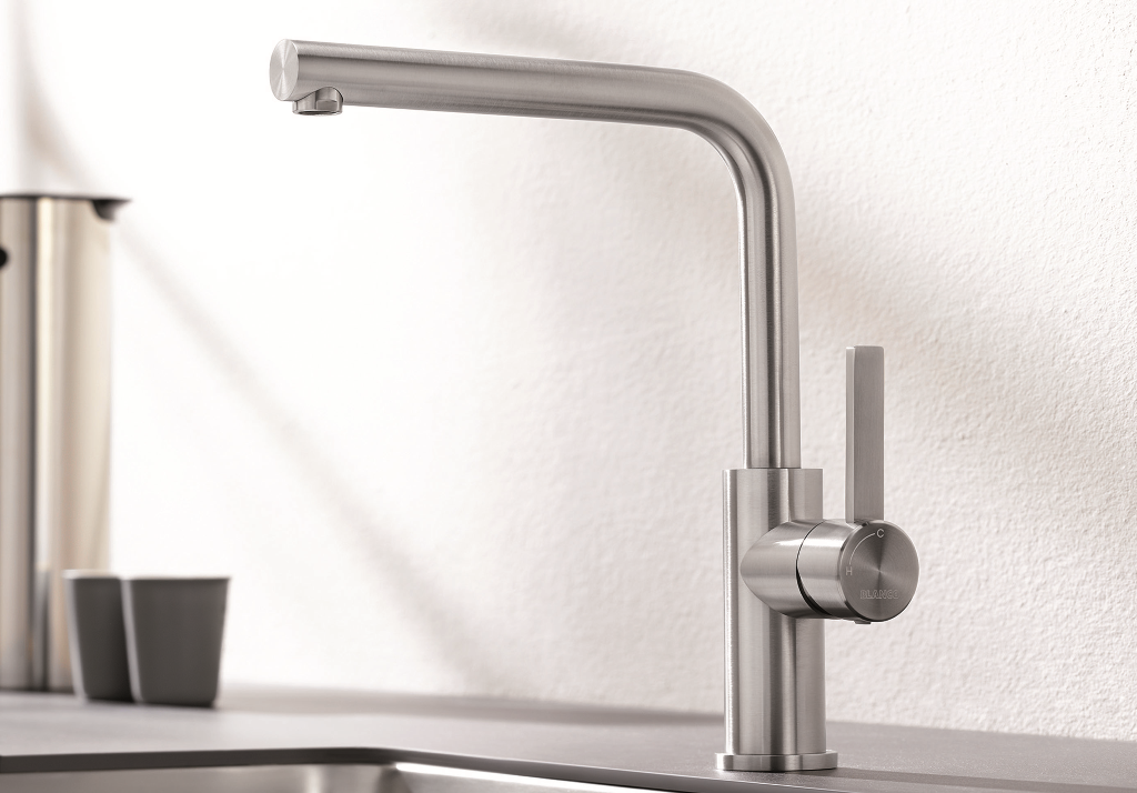 Einhebelmischer mit Festauslauf Hochdruck Küchenarmatur / Spültischarmatur Oberfläche: Edelstahl Massiv