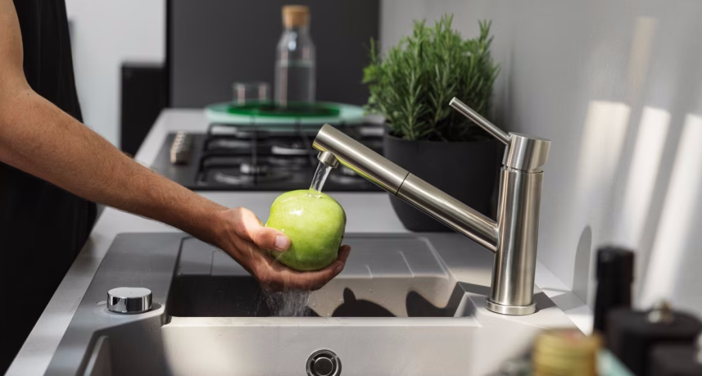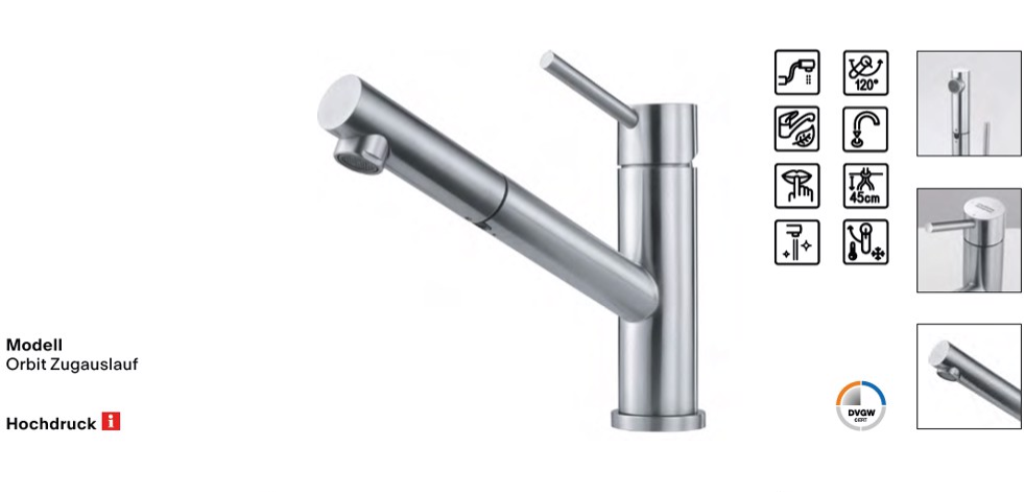 Einhebelmischer mit Schlauchbrause Hochdruck Küchenarmatur / Spültischarmatur Oberfläche: Edelstahl Massiv