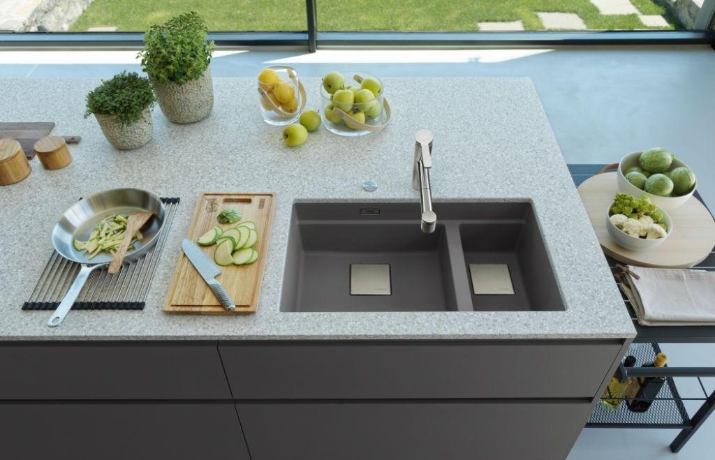 Granitspüle / Einbauspüle / Eckspüle Küchenspüle aus Fragranit+ Außenmaße: 960x500mm