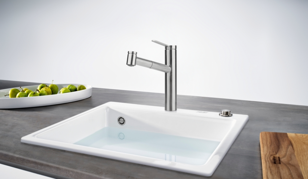 Einhand-Spültischbatterie Oberfläche: Weiss 360° schwenkbarer Auslauf