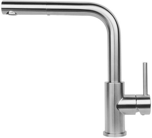 Einhand-Spültischbatterie mit Zugauslauf Hochdruck Oberfläche: Edelstahl massiv 360° schwenkbarer Auslauf