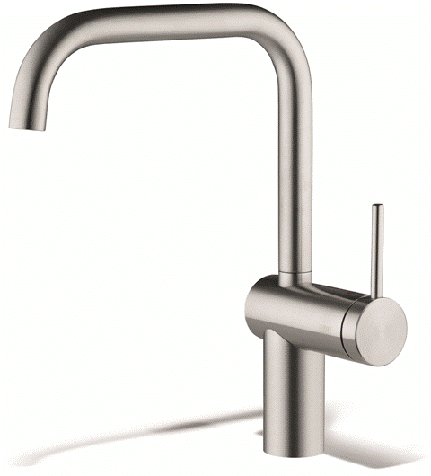 Einhebelmischer mit Pendelbrause mit schwenkbarem Auslauf Oberfläche: Edelstahl massiv