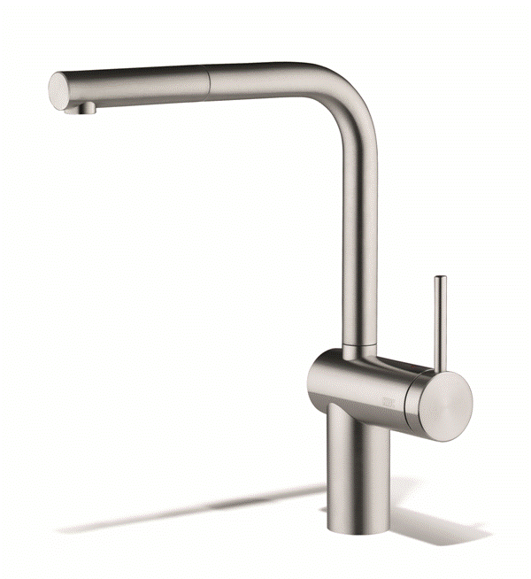 Einhebelmischer mit Pendelbrause mit schwenkbarem Auslauf Oberfläche: Edelstahl massiv