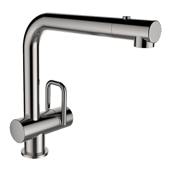 Einhebelmischer mit Umstellbrause mit schwenkbarem Auslauf Material: Edelstahl massiv