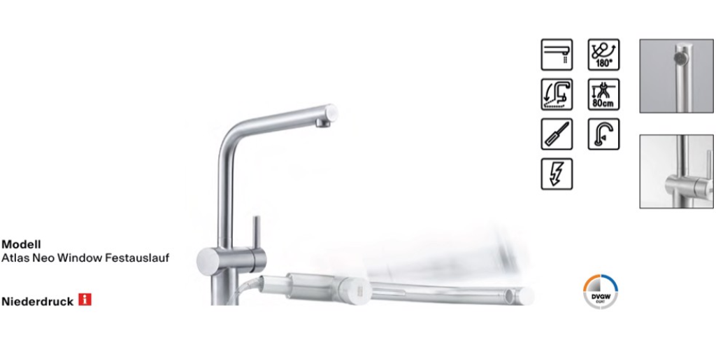 Einhebelmischer mit Festauslauf Niederdruck umlegbar für die Vorfenstermontage