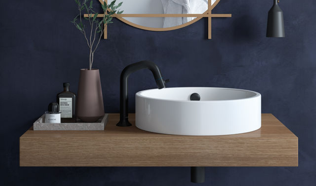 Waschtisch-Standventil Kaltwasseranschluss Auslauf fest, Kartusche mit Keramikscheiben Oberfläche: Mattschwarz