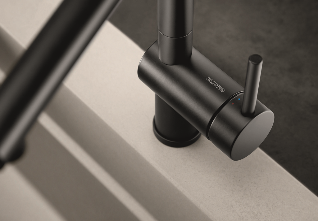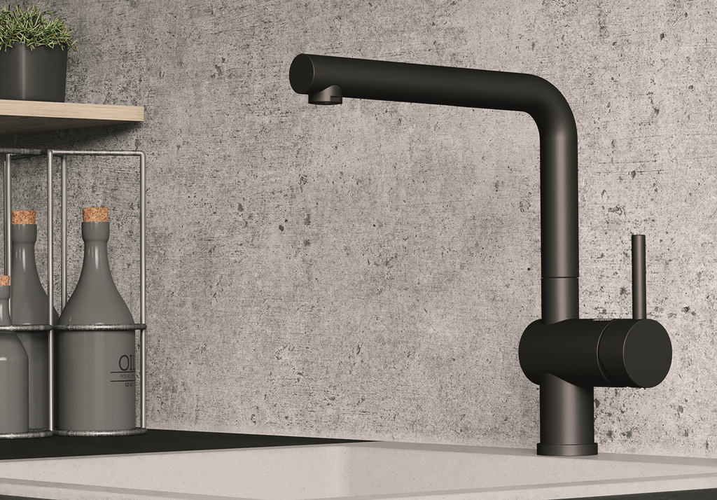 Einhebelmischer mit Festauslauf Hochdruck Oberfläche: Sonderfarbe Schwarz matt schwenkbarer Auslauf 360°