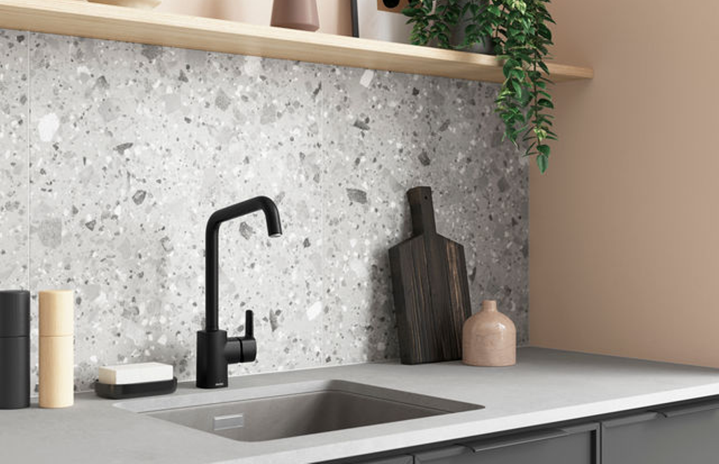 Einhebelmischer / Küchenarmatur Hochdruck Auslauf 120° schwenkbar Kartusche mit Keramikscheiben Oberfläche: Mattschwarz