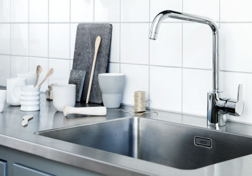 Edelstahlspüle mit Flachrand Spülen-Serie: Clean & Care (-CC-) Beckentiefe: 150mm