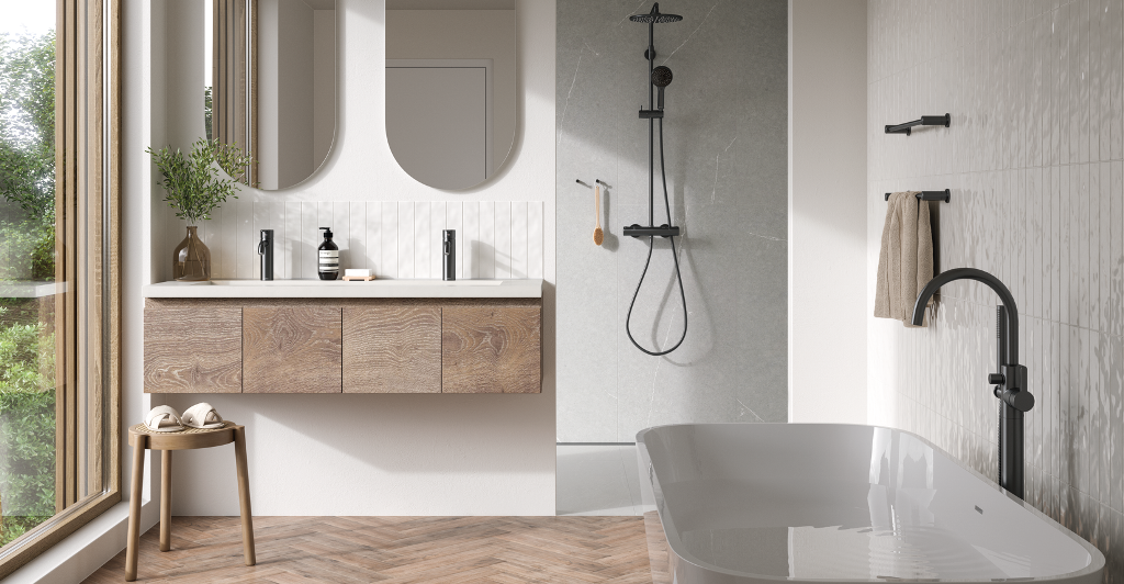 Einhebelmischer / Waschtischarmatur Hochdruck Badarmatur Auslauf 120° schwenkbar Oberfläche: Mattschwarz