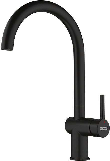 FRANKE Küchenarmatur Active J Einhebelmischer Black Matt mit Festauslauf und Laminarstrahl 180° schwenkbarer Auslauf