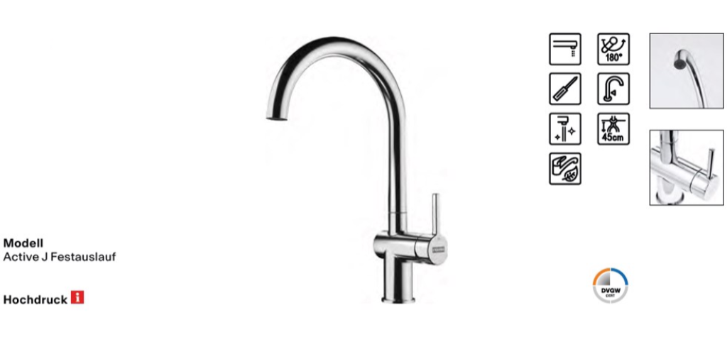 Küchenarmatur Active J Black Matt mit Festauslauf (1150653398)