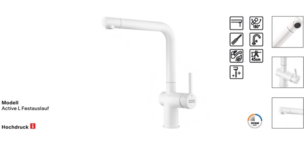 Küchenarmatur Active L Black Matt mit Festauslauf (1150653371)