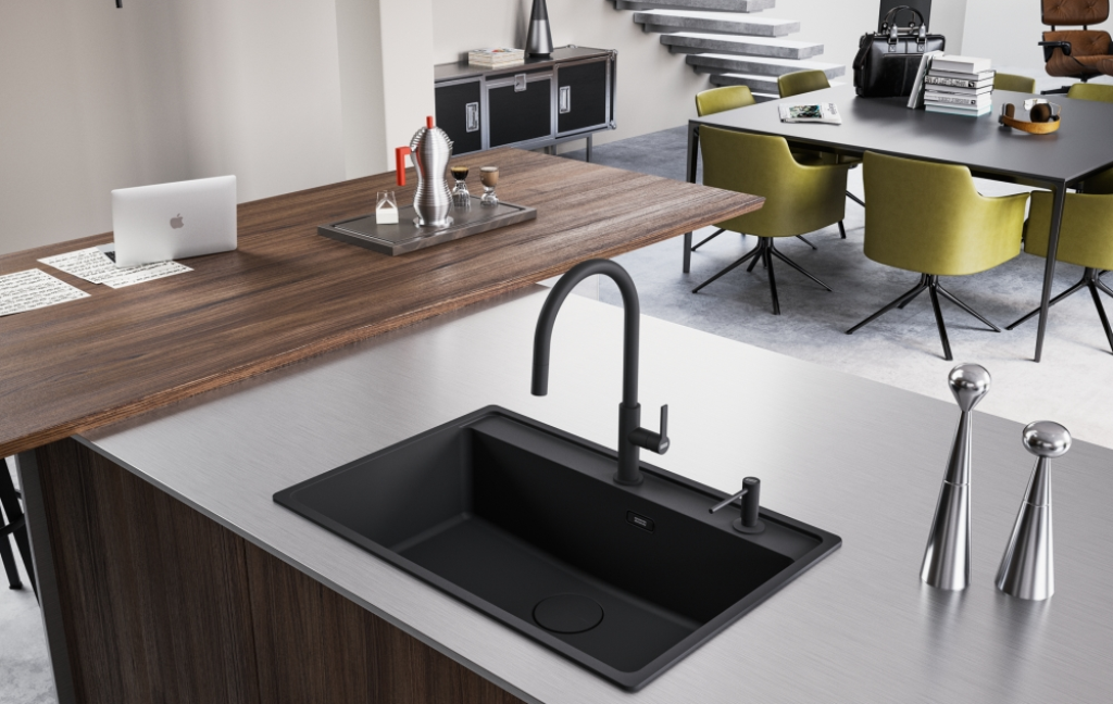 Einhebelmischer mit Festauslauf Hochdruck Küchenarmatur / Spültischarmatur Oberfläche: Black Matt