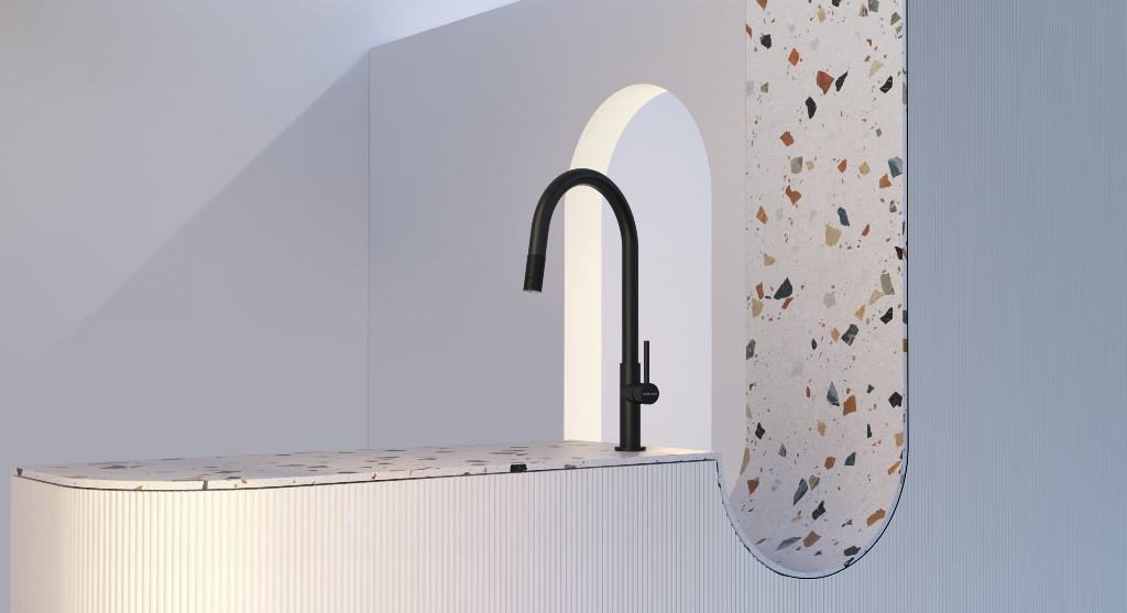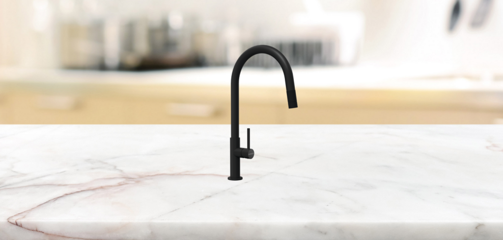 Einhebelmischer mit Zugauslauf Hochdruck Oberfläche: Schwarz matt schwenkbarer Auslauf 360°