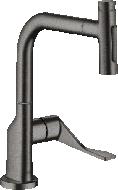 Einhebel-Küchenarmatur mit Zugauslauf Hochdruck mit Ausziehbrause und 2-Strahlarten Laminar-und Brausestrahl mit Select-Knopf Oberfläche: Brushed Black Chrome
