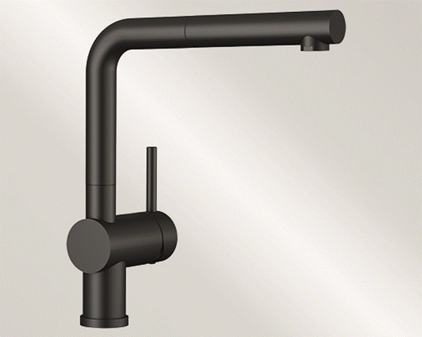 Einhebelmischer mit Zugauslauf Hochdruck Oberfläche: Sonderfarbe Schwarz matt schwenkbarer Auslauf 140°