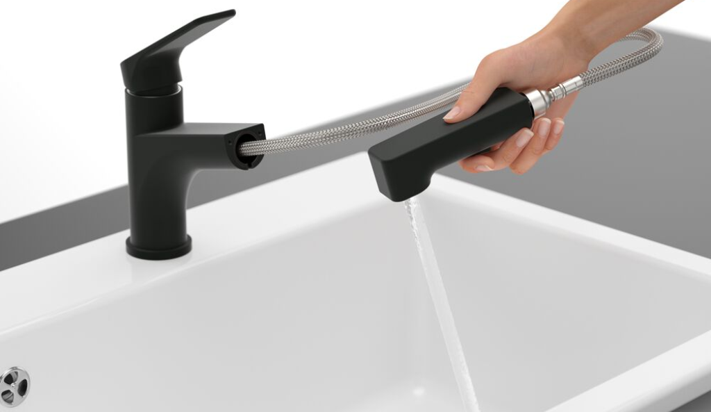 Einhebelmischer Junis Shower Hochdruck Küchenarmatur / Spültischarmatur mit Schlauchbrause Oberfläche: Black Matt