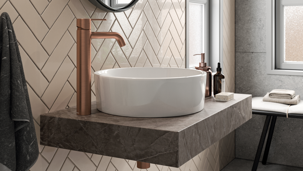 Einhebelmischer / Waschtischarmatur Hochdruck Badarmatur Auslauf fest Oberfläche: Kupfer gebürstet