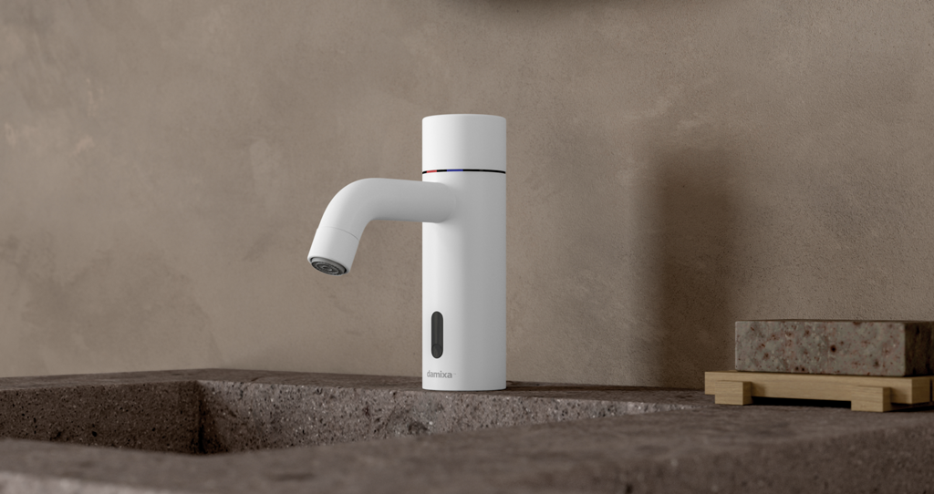 DAMIXA Waschtischarmatur Silhouet - Small Touchless Public Badarmatur Mattweiss Berührungsloser Sensor opto-elektronisch gesteuert