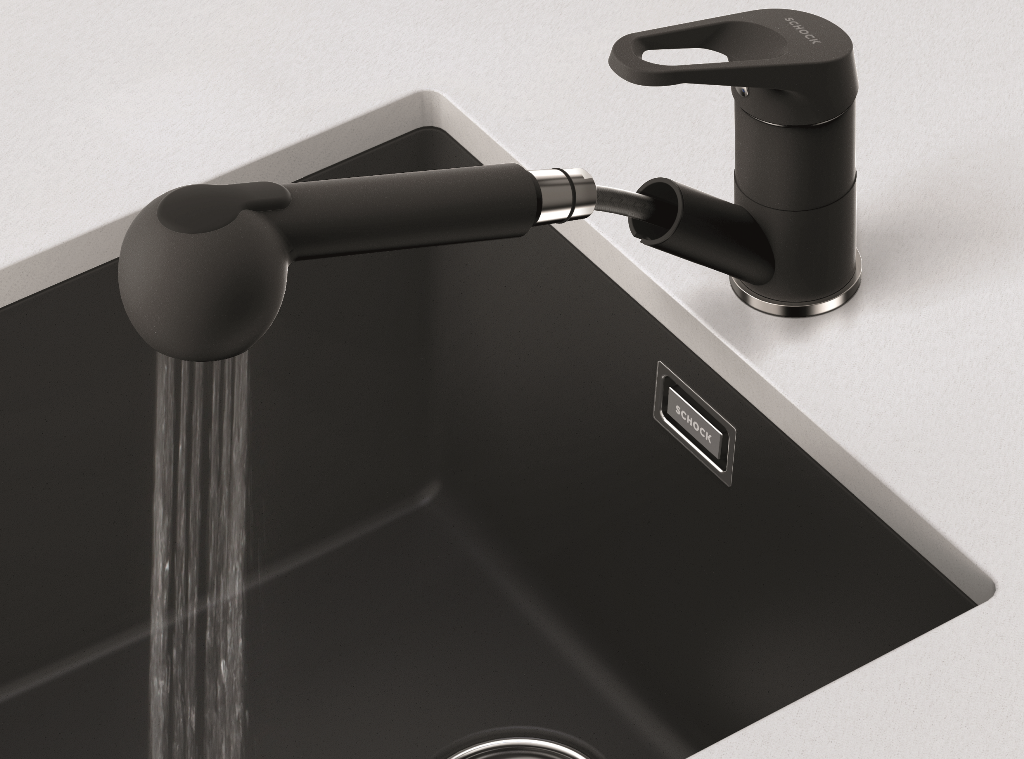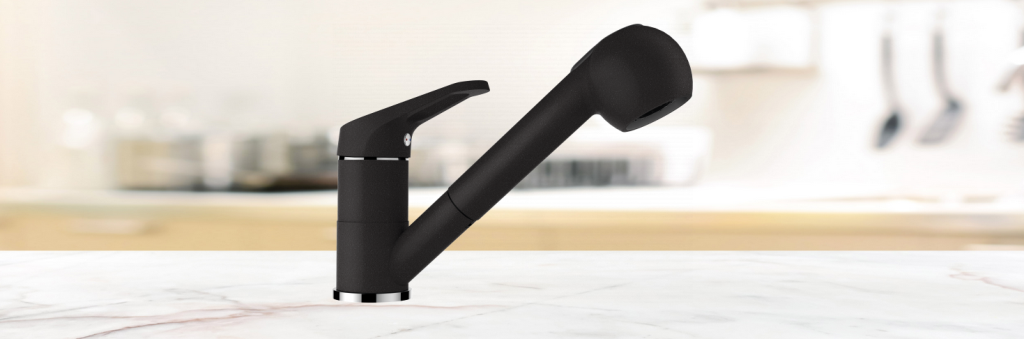 Einhebelmischer in Spülenfarbe Farbvariante: Einbrennlackierung mit herausziehbarer Schlauchbrause