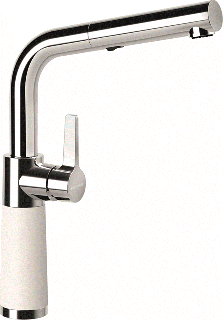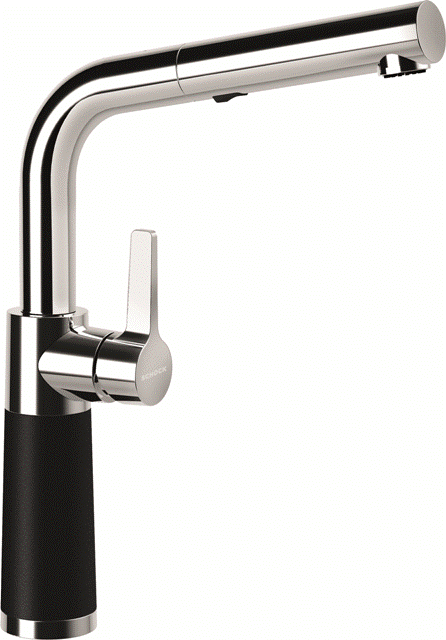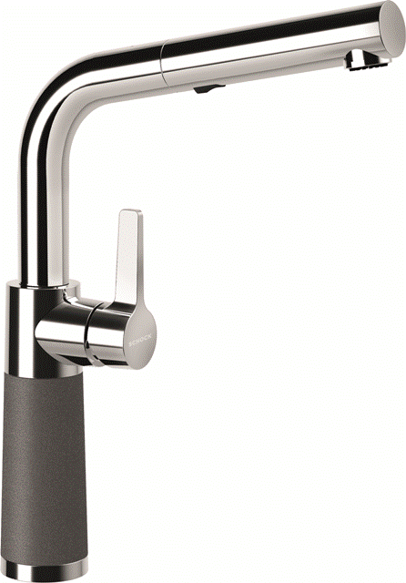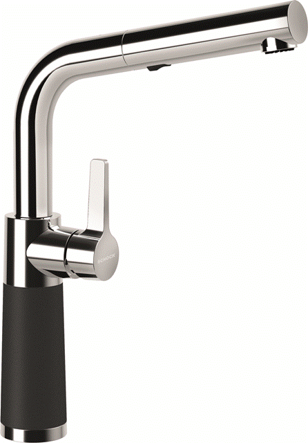 Einhebelmischer in Spülenfarbe Farbidentisch mit Materialhülse mit herausziehbarer Schlauchbrause
