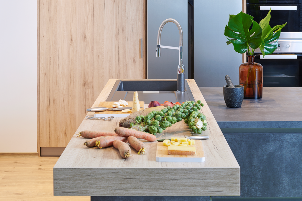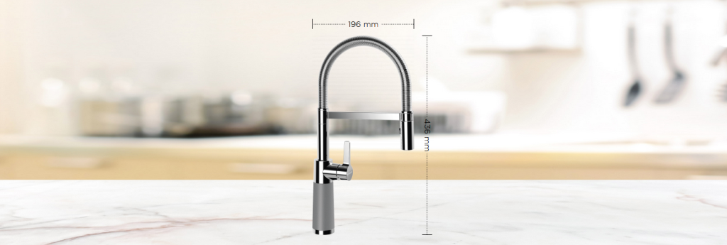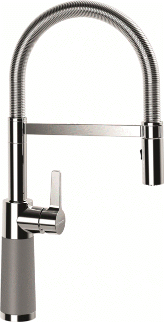 Einhebelmischer in Spülenfarbe Farbidentisch mit Materialhülse mit flexibler Pendelbrause