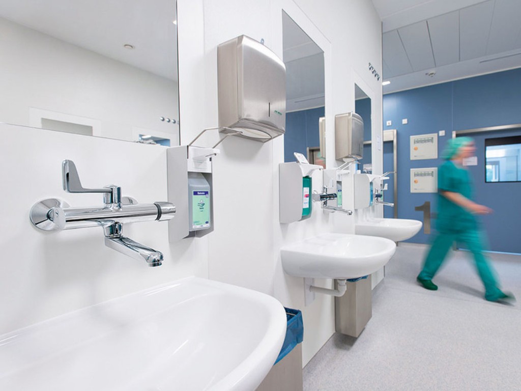 Einhebelmischer Waschtisch mit Festauslauf für den medizinischen Bereich geeignet Auslauf fest, mit KWC Ablaufventil Ø63mm