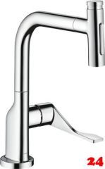 Einhebel-Küchenarmatur mit Zugauslauf Hochdruck mit Ausziehbrause und 2-Strahlarten Laminar-und Brausestrahl mit Select-Knopf sBox für eine leise, leichtgängige und geschützte Schlauchführung im Unterschrank Oberfläche: Chrom