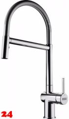 Einhebel-Küchenarmatur Semi-Pro Hochdruck mit Pendelbrause und 2-Strahlarten Laminar-und Brausestrahl Oberfläche: Chrom