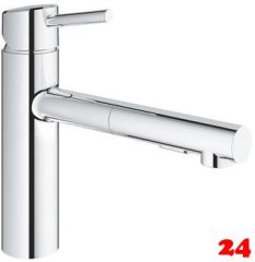 Einhebel-Küchenarmatur mit Zugauslauf Hochdruck mit Ausziehbrause und 2-Strahlarten Laminar-und Brausestrahl Griff rechts oder links positionierbar Oberfläche: Chrom