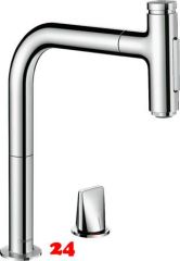 Einhebel-Küchenarmatur mit Ausziehbrause Hochdruck mit Select-Knopf Bedienung Umstellung von Laminarstrahl / Brausestrahl auf SatinFlow Oberfläche: Chrom