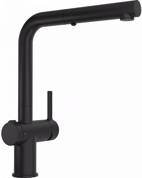 Einhebelmischer mit Zugauslauf Hochdruck mit integrierter Ablauffernbedienung Oberfläche: Black Matt