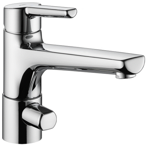 Einhebelmischer mit Festauslauf mit integriertem Geräteabsperrventil Oberfläche: Chrom mit schwenkbarem Auslauf