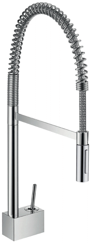 Einhebelmischer mit Zugauslauf Hochdruck Bedienung durch Sensor-Technologie mit herausziehbarer Schlauchbrause Oberfläche: Edelstahl Massiv