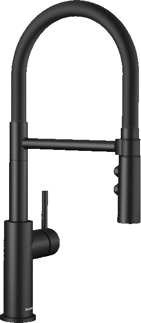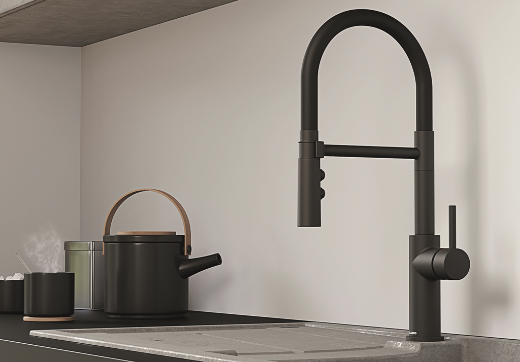Einhebelmischer mit Zugauslauf Hochdruck Oberfläche: Sonderfarbe Schwarz matt schwenkbarer Auslauf 140°