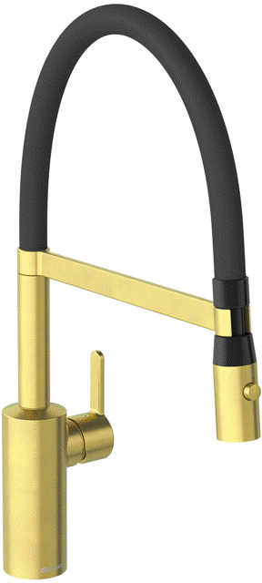 Einhebelmischer / Küchenarmatur Hochdruck mit 2-Strahl Brausefunktion Oberfläche: Messing gebürstet