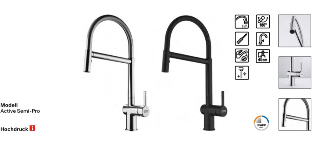 Einhebelmischer mit Pendelbrause Hochdruck mit flexibler Schlauchbrause und Magnethalterung Oberfläche: Chrom