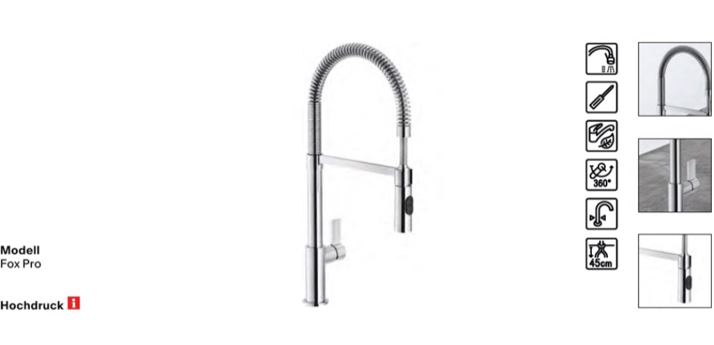 Einhebelmischer mit Pendelbrause Hochdruck mit flexibler Schlauchbrause und Magnethalterung Oberfläche: Chrom