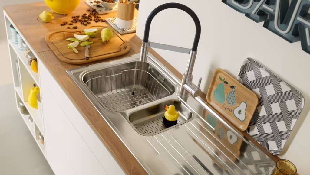 Einhebelmischer mit Pendelbrause Hochdruck Küchenarmatur / Spültischarmatur Oberfläche: Chrom / Black Matt