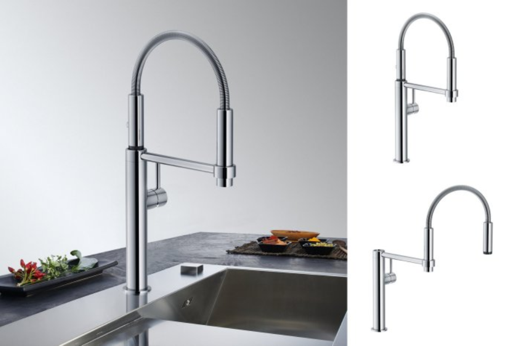Einhebelmischer mit Federbrause Hochdruck Küchenarmatur / Spültischarmatur Oberfläche: Chrom