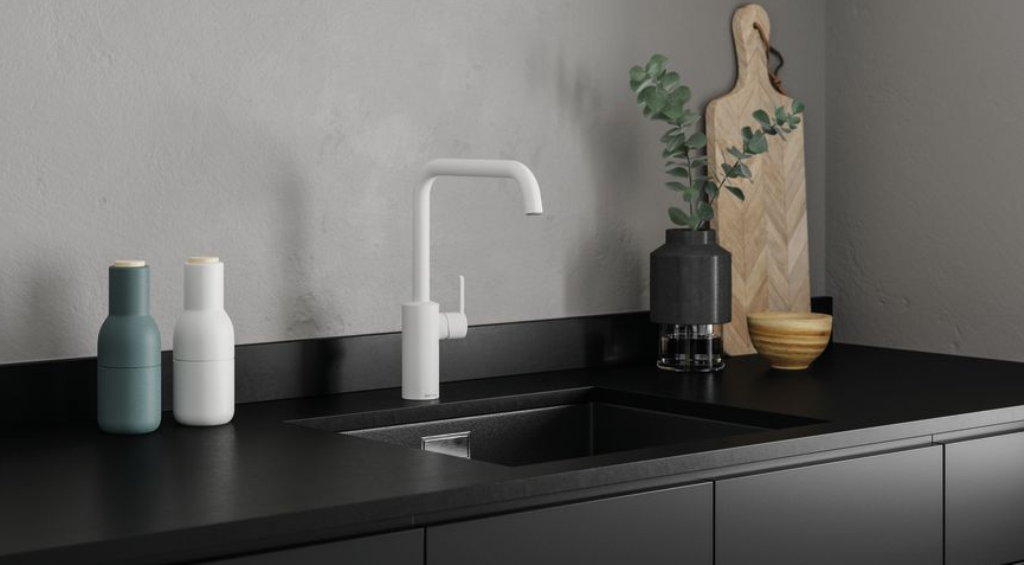 Einhebelmischer / Küchenarmatur Hochdruck Auslauf 120° schwenkbar Kartusche mit Keramikscheiben Oberfläche: Mattweiss