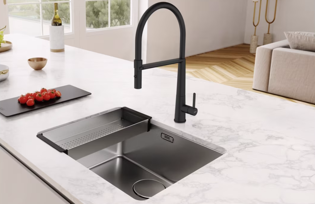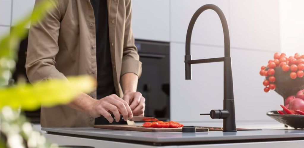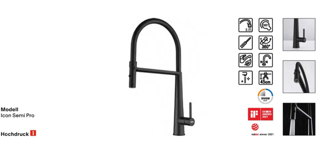 Einhebelmischer mit Pendelbrause Hochdruck mit flexibler Schlauchbrause Silicon schwarz Oberfläche: Black Matt
